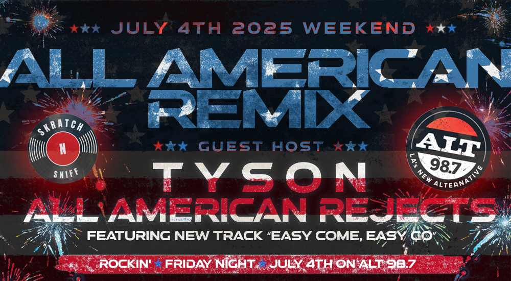 After 13 years, alt-rockers “All American Rejects” are back with new music. Lead singer, Tyson, steps in and takes control of our Skratch n Sniff Alt Mix with 2 hours of *All American* Alt Music.
