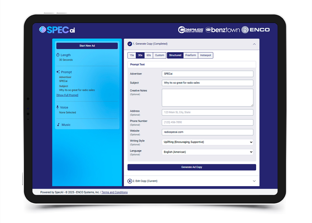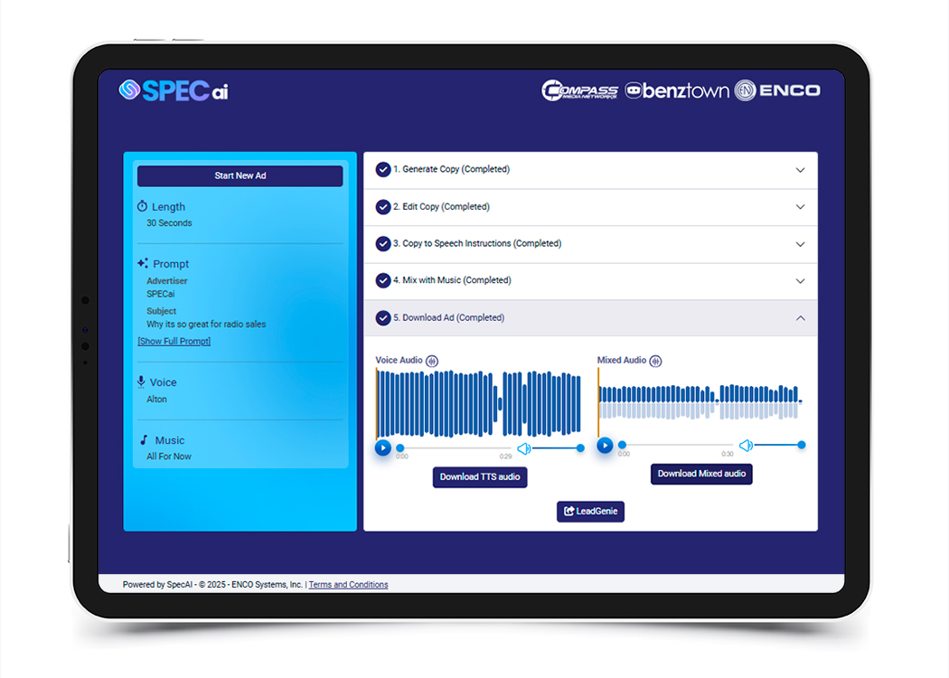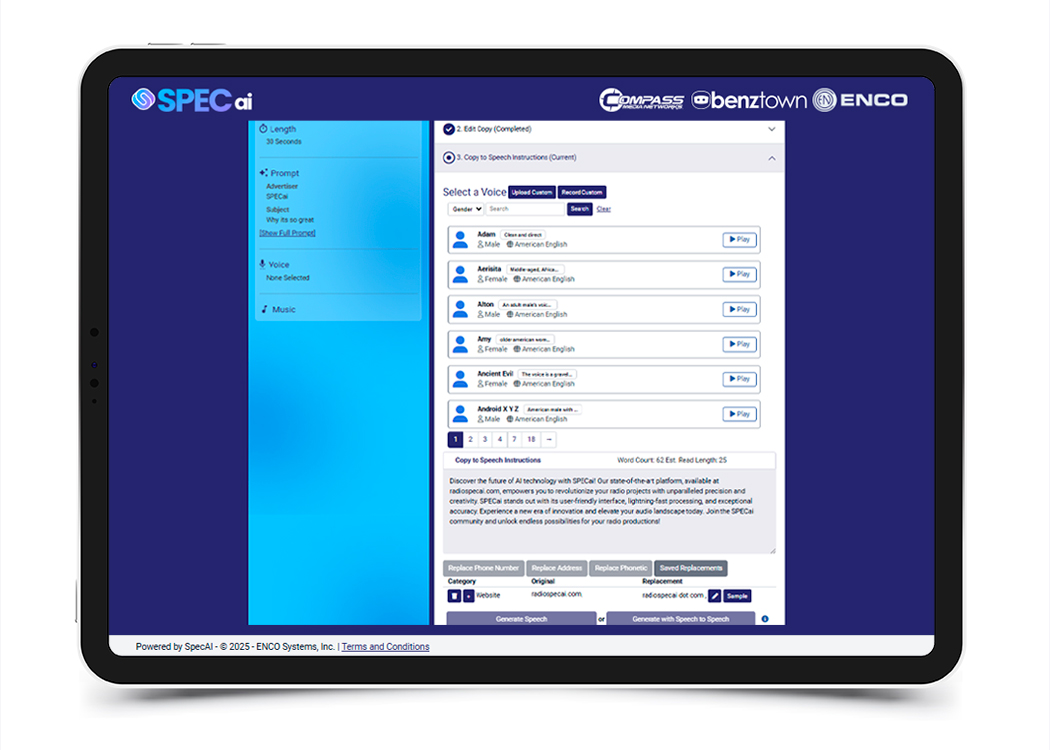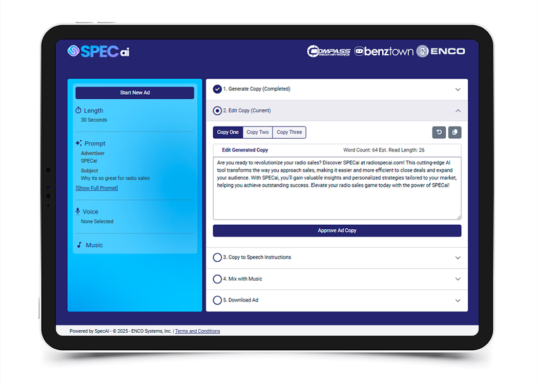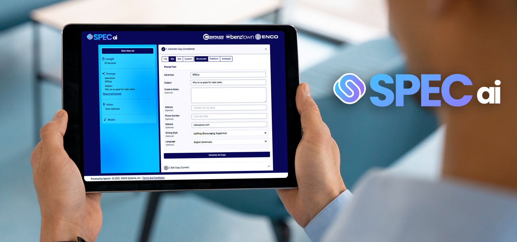 SPECai offers an easier, faster way to create — with an enhanced experience, streamlined workflow, and powerful tools built to help your station sell more spots and boost local revenue.